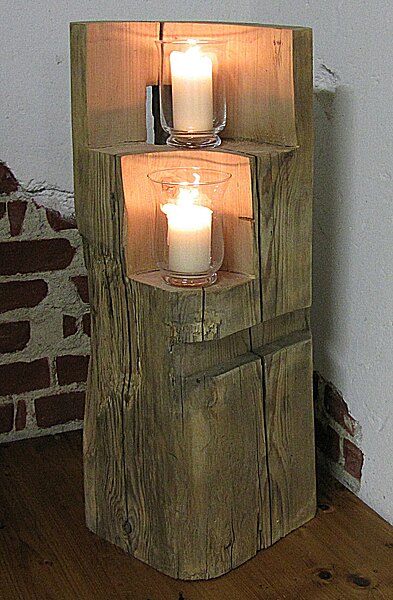 Für eine ansprechende Verschönerung Ihres Wohnraums bieten wir Ihnen Windlichter aus alten Holzbalken, die Ihrem Zimmer ein Gefühl von Wärme und Behaglichkeit verleihen.