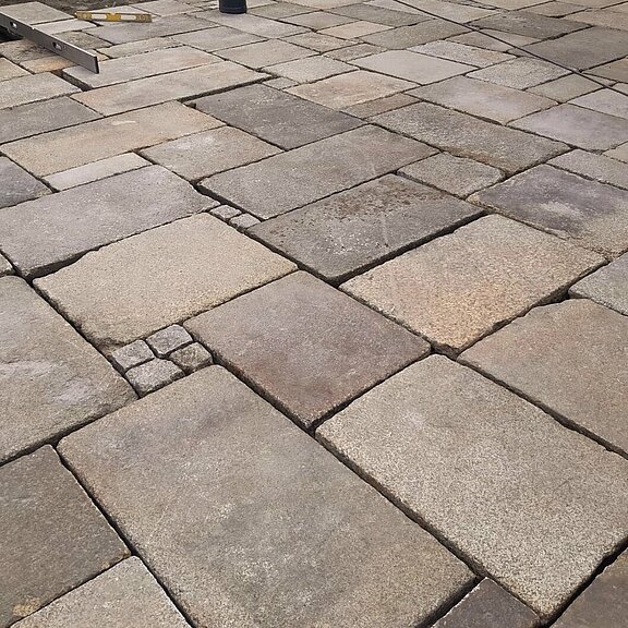 Die Oberfläche der alten Pflastersteine ist abgefahren / glatt und in den Farben grau und braun erhältlich.
