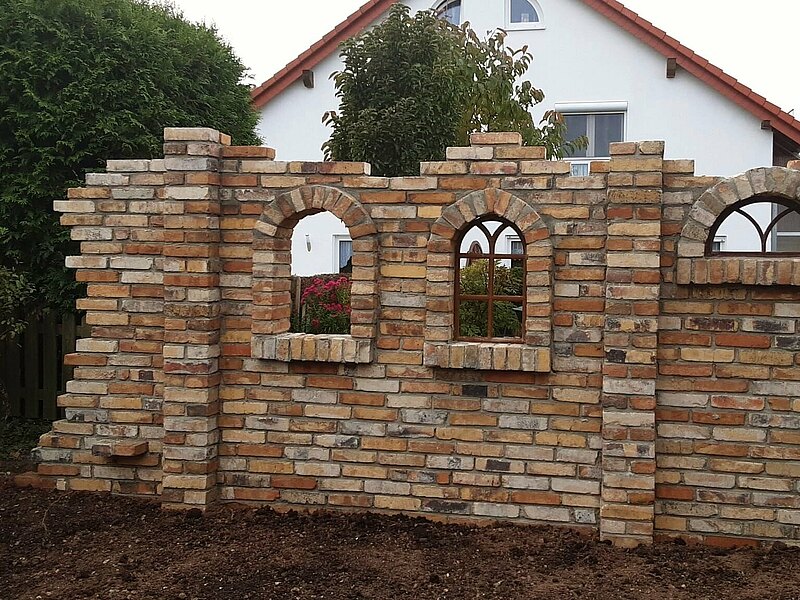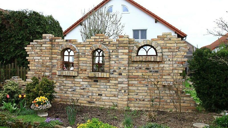 Fachwerk - Ruinenmauer - Gartenmauer - Gartenhaus - Hochbeet - mit alten Ziegeln gestalten