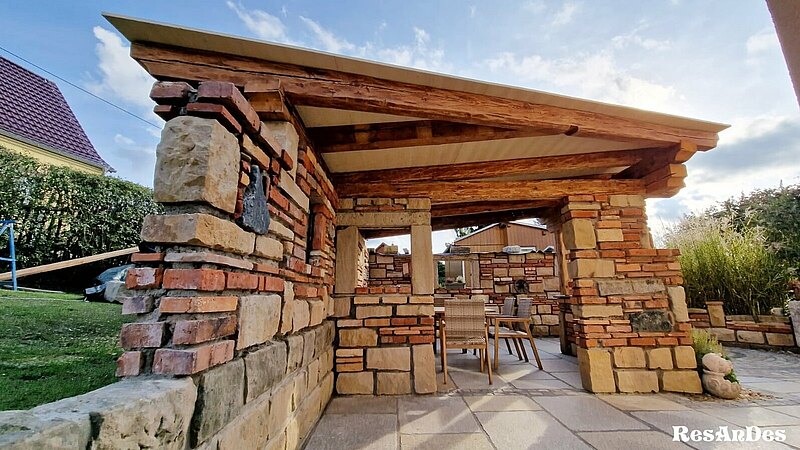 Diese aus unseren Altholzbrettern und alten Balken bestehende Chilllounge mit einer kleinen Qutdoorküche, bietet den Idealen Platz für Momente der Entspannung.